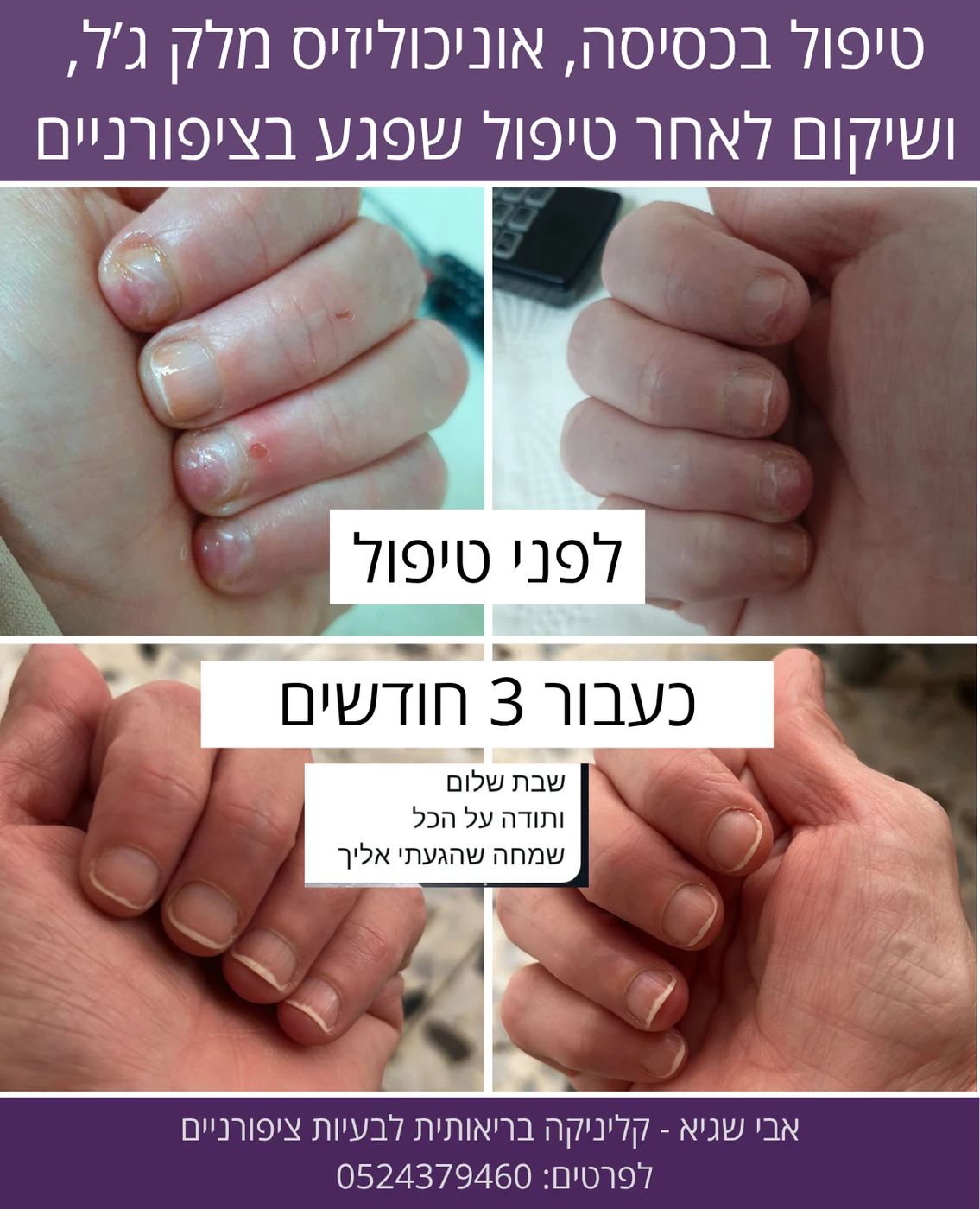 נא לצלם ולשלוח תמונות של כל הציפורניים ובמיוחד אלו עם הבעיה.