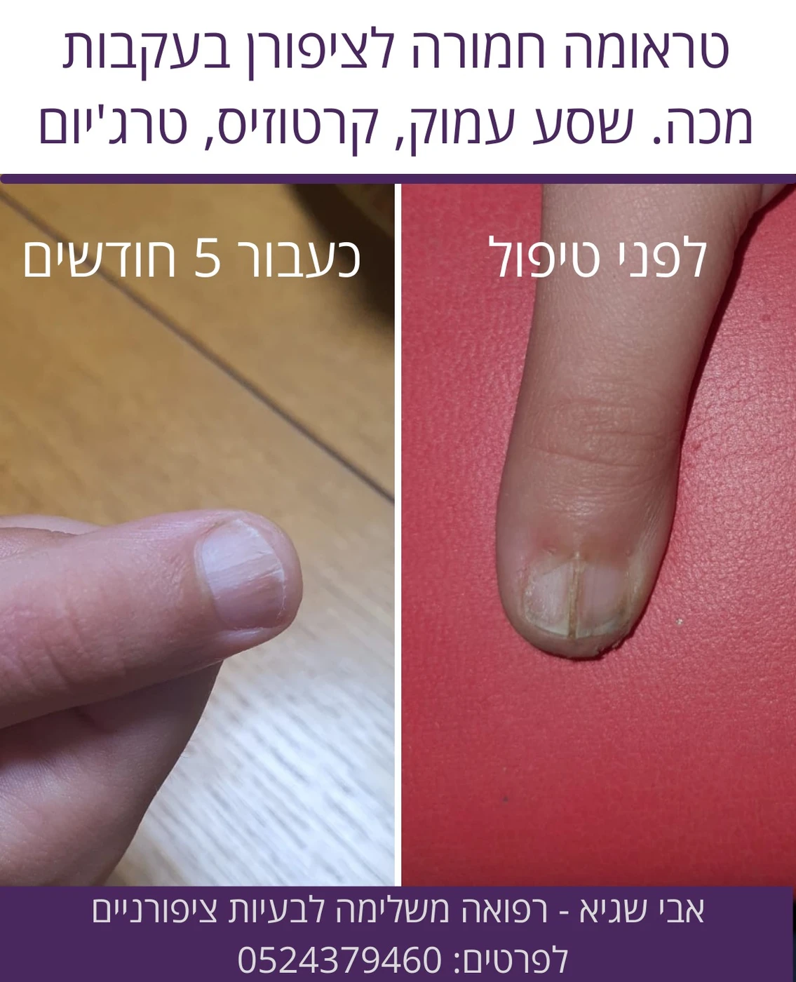 קיבל הנחיות רבות ממכונים ומרפאות שונות, שלצערנו רק החמירו את מצב הציפורן עד לטרג'יום קשה.