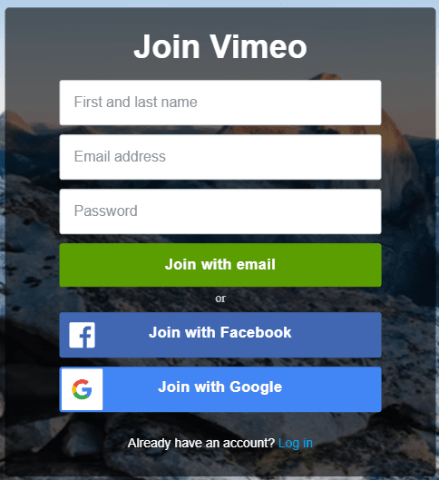 ראשית עלייך להרשם ל-Vimeo כמשתמש חדש. ההרשמה ללא תשלום.